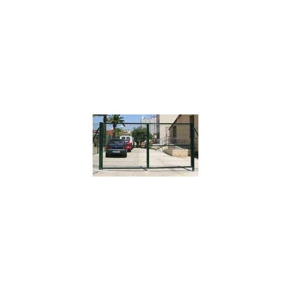 Apertura abatible, se compone de dos hojas, con postes a ambos lados para fijar de manera independiente al terreno.