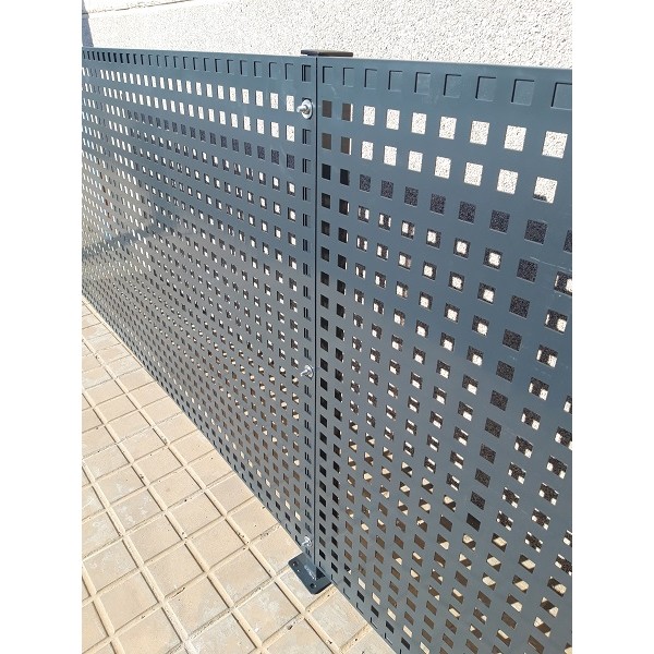 Este modelo de valla se caracteriza por su fácil y rápida colocación, al tratarse de un panel enmarcado en la parte superior e inferior, cuenta con los extremos o laterales libres, quedando unos centímetros de chapa a ambos lados que permiten la fijación a los postes de manera directa a modo de solape.